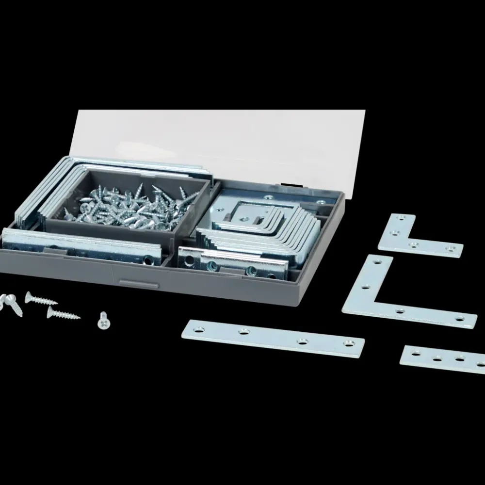 - Ensemble complet de diverses équerres et vis en acier (180 pièces)