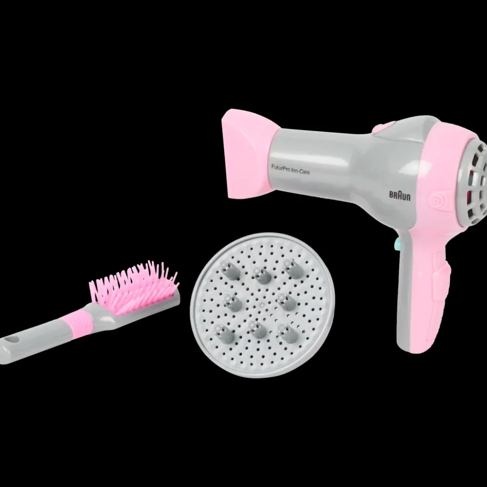 - Le sèche-cheveux souffle de l’air et fonctionne avec une pile AA (vendue séparément)