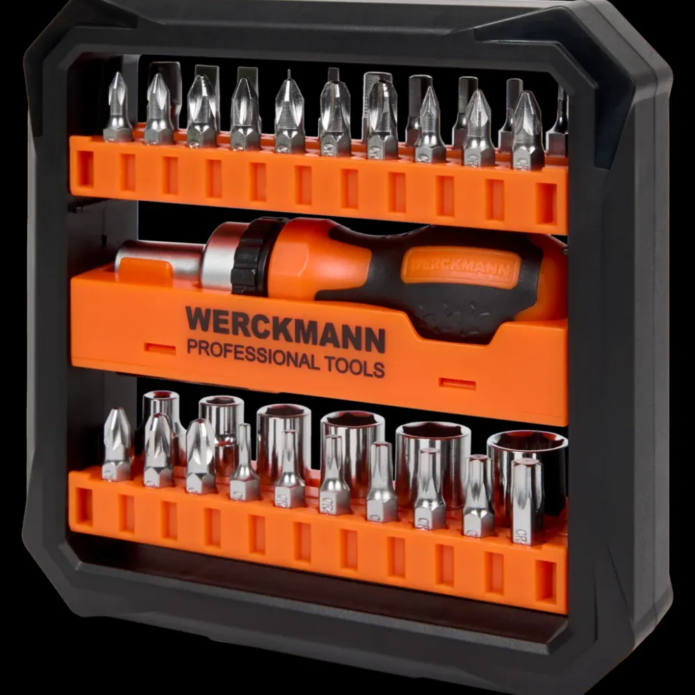 - 1 clé à cliquet, 1 rallonge, 6 douilles 1/4 Dr et 29 embouts de 25 mm