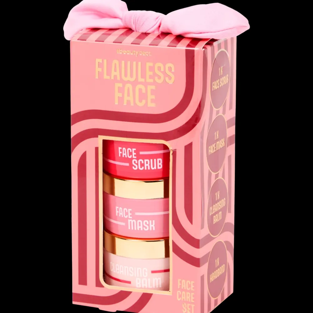 - Comprend : gommage pour visage, masque pour visage, baume nettoyant et bandeau